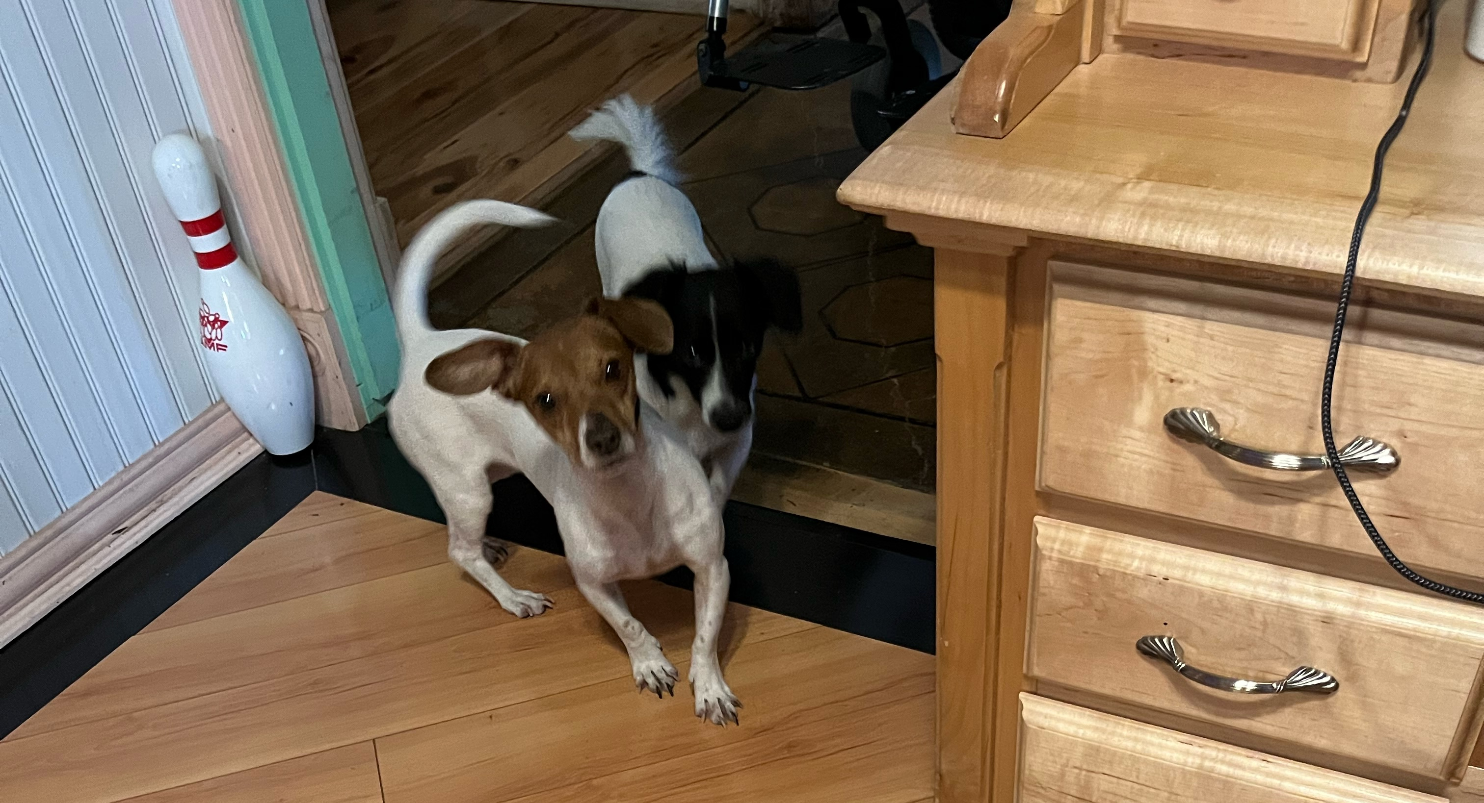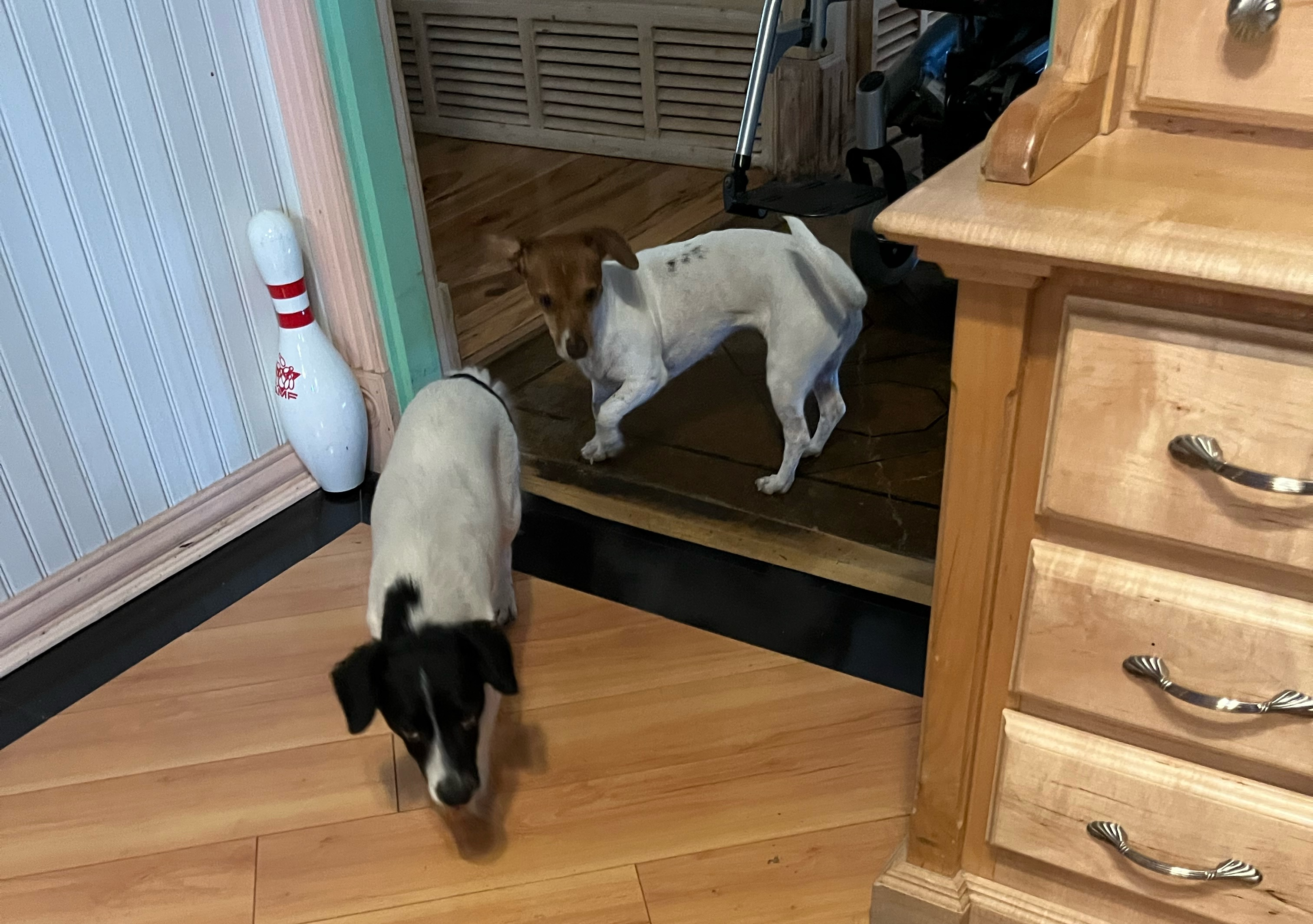 Sophia is extremely skittish, but she seems to be settling down a bit. Her and Mardi sniff each other and share Dad’s lap and seem like they’ll eventually become friends. She also likes to bark at ghosts in the middle of the night! Bonnie is kind of a bitch so far, no pun intended. She’s pretty food aggressive. Most of the time, she ignores everything until Mardi goes toward the kitchen where the water and food are. She doesn’t seem as bad with Sophia since they grew up together I guess, but still gives her the stink eye. It’s something she’s going to need to be broken of, but so far all the tips I’ve found are for dogs on a feeding schedule. Our dogs have always had access to food at all times, so we’ll have to figure something out. Otherwise, she likes pets and exploring the yard. She’s quiet. Mardi seems scared of Bonnie so far. It’s early days, though. I think once they settle in, they’ll be good puppers. Also, neither of them like the double flap doggie door yet.